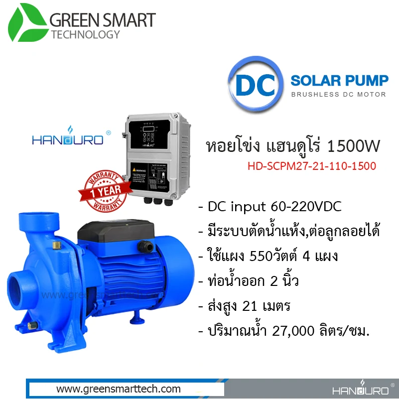 หอยโข่งโซล่าเซลล์ 1500W ท่อ 2 นิ้ว ยี้อ handuro รุ่น : HD-SCPM27-21-110-150