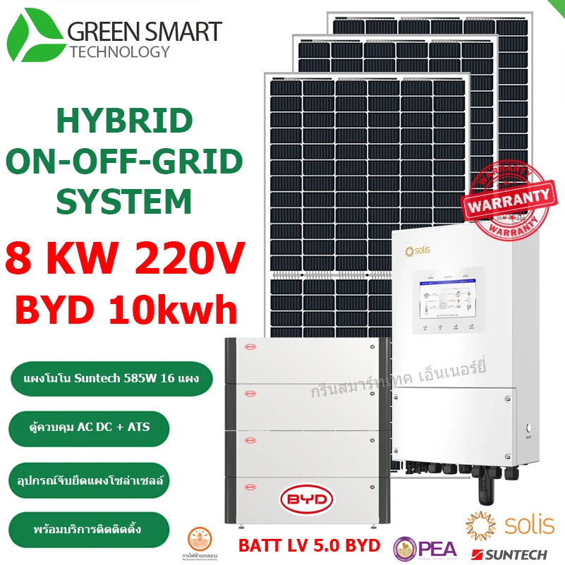 ชุด Hybrid ON/OFF Solis 8 KW 220V
